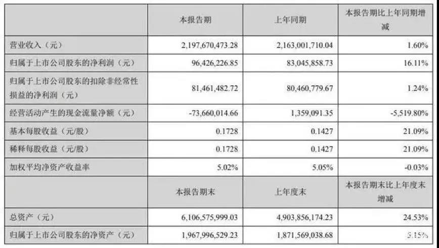 上半年實現凈利潤0.96億元 同比增長16.11%